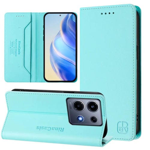 Funda de Cuero con Doble Pliegue y Succión Magnética Rfid para Infinix Note 30 Vip Rc01 (Verde Menta)