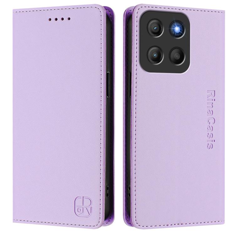 Funda de Cuero con Doble Pliegue y Succión Magnética Rfid para Motorola Moto G15 Rc01 (Morado Claro)