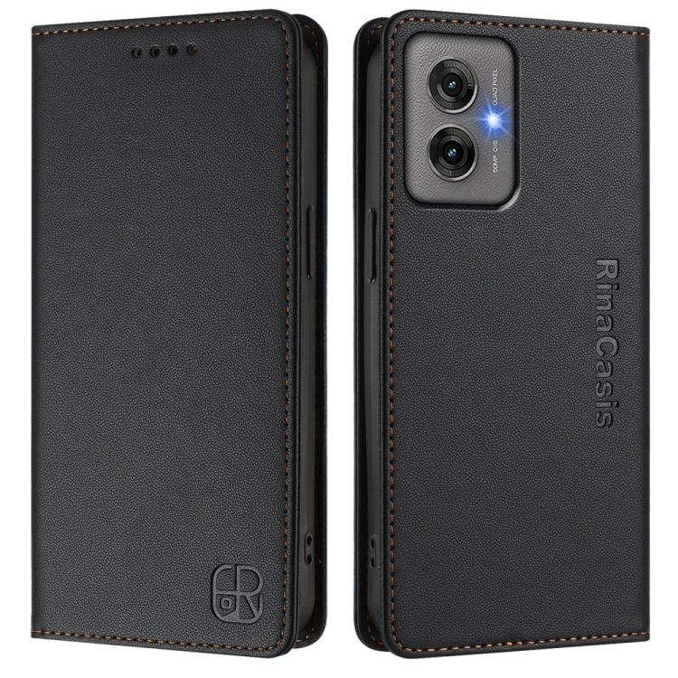 Funda de Cuero con Doble Pliegue y Succión Magnética Rfid para Motorola Moto G55 Rc01 (Negro)