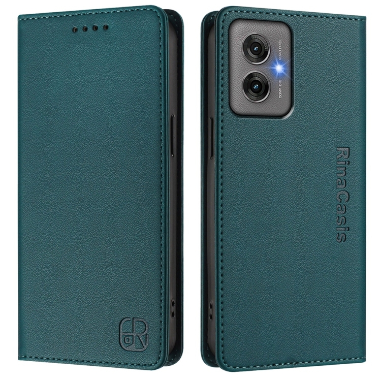 Funda de Cuero Motorola Moto G55 Rc01 con Doble Pliegue y Succión Magnética Rfid (Verde Oscuro)