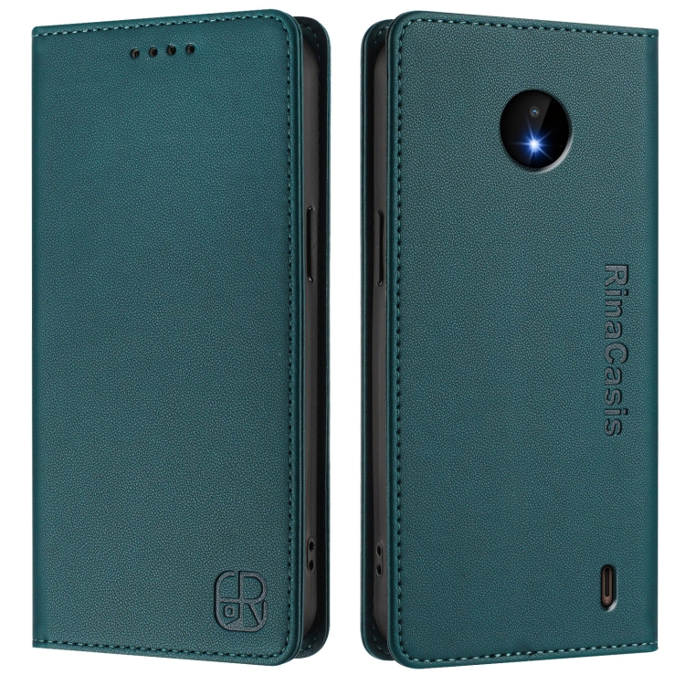 Funda de Cuero con Doble Pliegue y Succión Magnética RFID para Nokia C10/C20 Rc01 (Verde Oscuro)