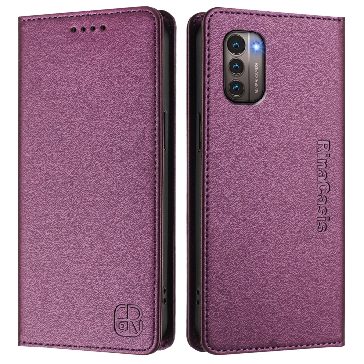 Funda de Cuero con Doble Pliegue Succión Magnética Rfid para Nokia G11/G21 Rc01 (Violeta)
