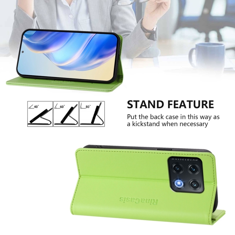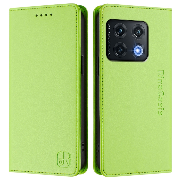 Funda de Cuero con Doble Pliegue y Succión Magnética RFID para OnePlus 10 Pro Rc01 (Verde Hierba)