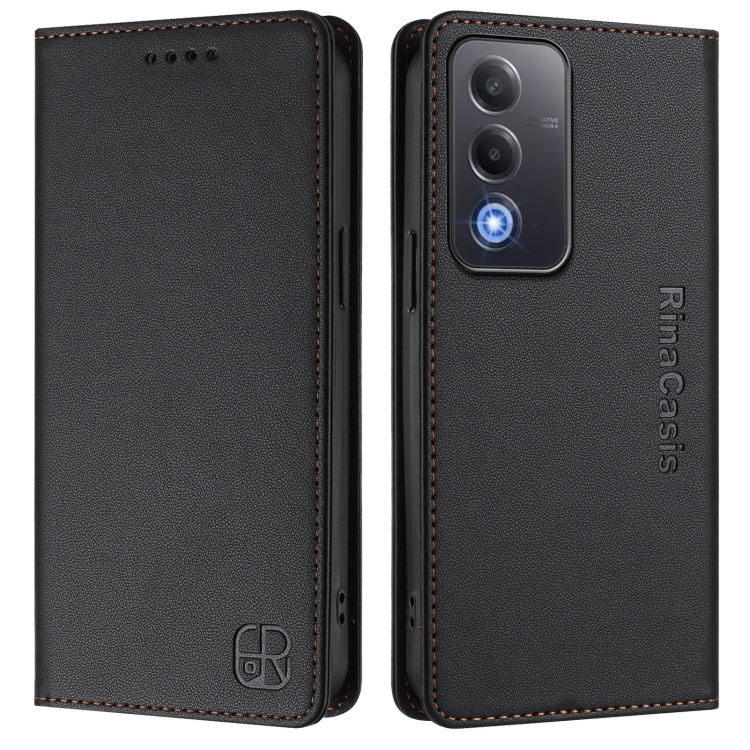 Funda de Cuero con Doble Pliegue y Succión Magnética Rfid para Oppo A3 Pro 5G Global Rc01 (Negra)