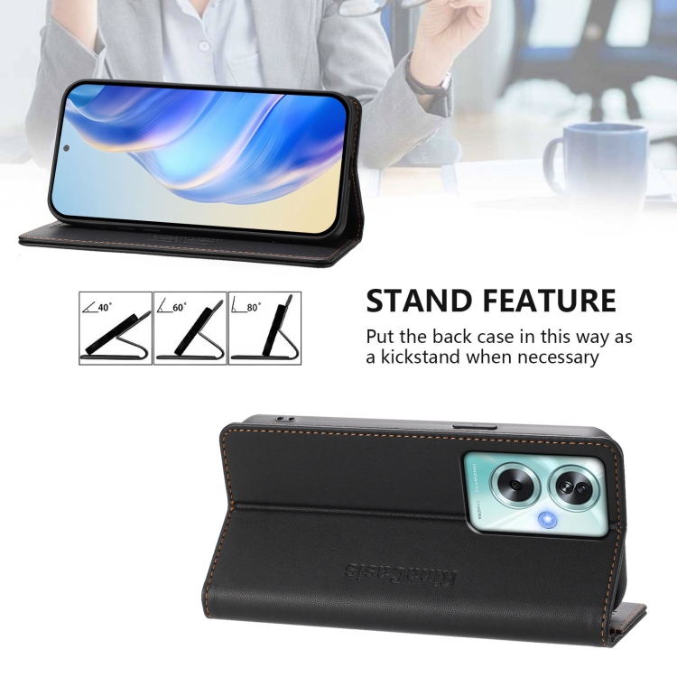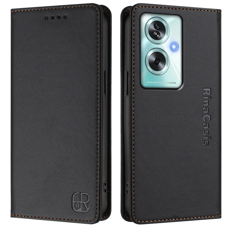 Funda de Cuero con Doble Pliegue y Succión Magnética Rfid para Oppo A79 5G Global Rc01 (Negra)