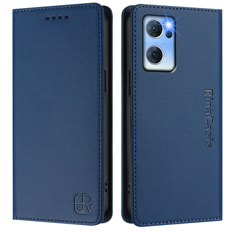 Funda de Cuero con Doble Pliegue y Succión Magnética Rfid para Oppo Reno7 5G Global / Find X5 Lite Rc01 (Azul Oscuro)
