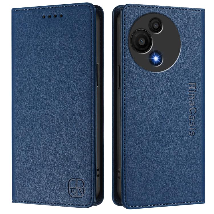 Funda de cuero con doble pliegue y succión magnética RFID para TCL 605/60 SE RC01 (azul oscuro)