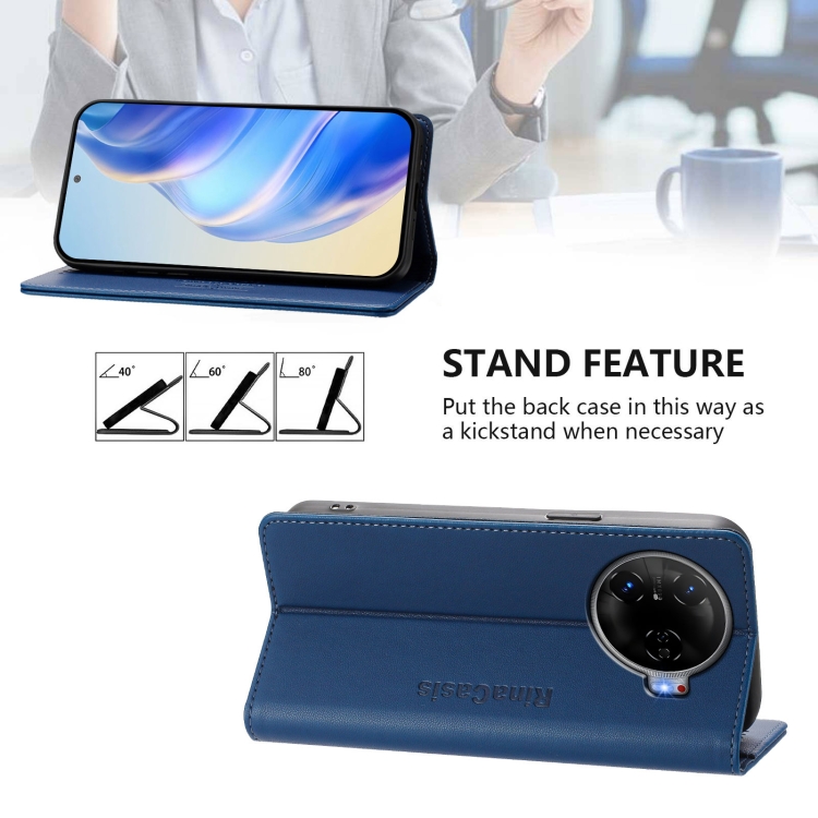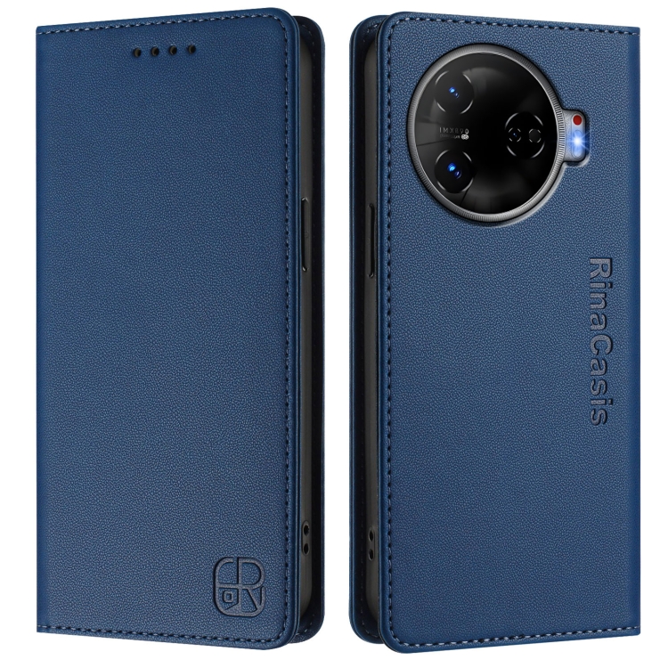 Funda de Cuero RFID con Doble Pliegue y Succión Magnética para Tecno Camon 30 Pro 5G Rc01 (Azul Oscuro)
