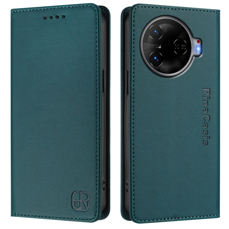 Funda de Cuero con Doble Pliegue y Succión Magnética Rfid para Tecno Camon 30 Pro 5G Rc01 (Verde Oscuro)