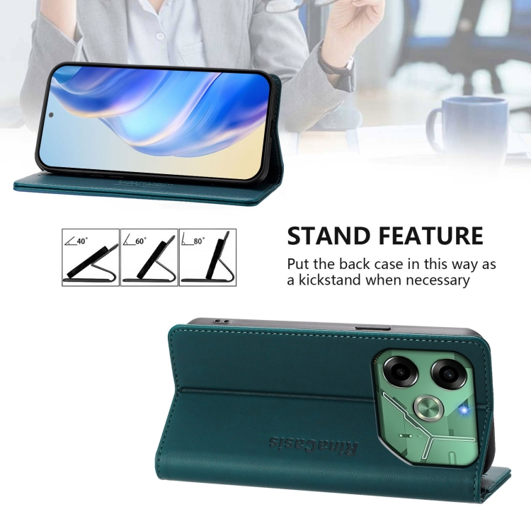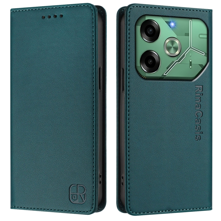 Funda de Cuero para Tecno Pova 6 4G Rc01 con Doble Pliegue y Succión Magnética Rfid (Verde Oscuro)