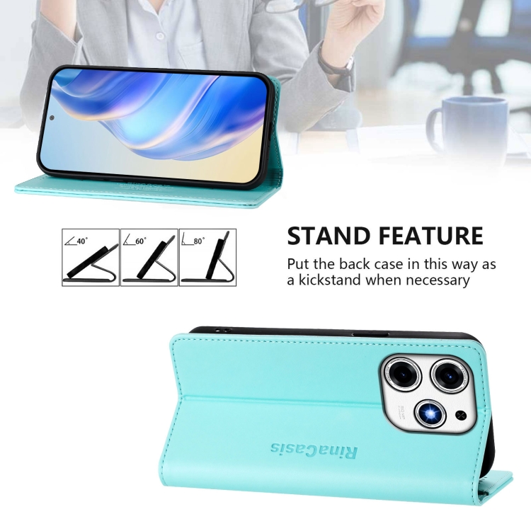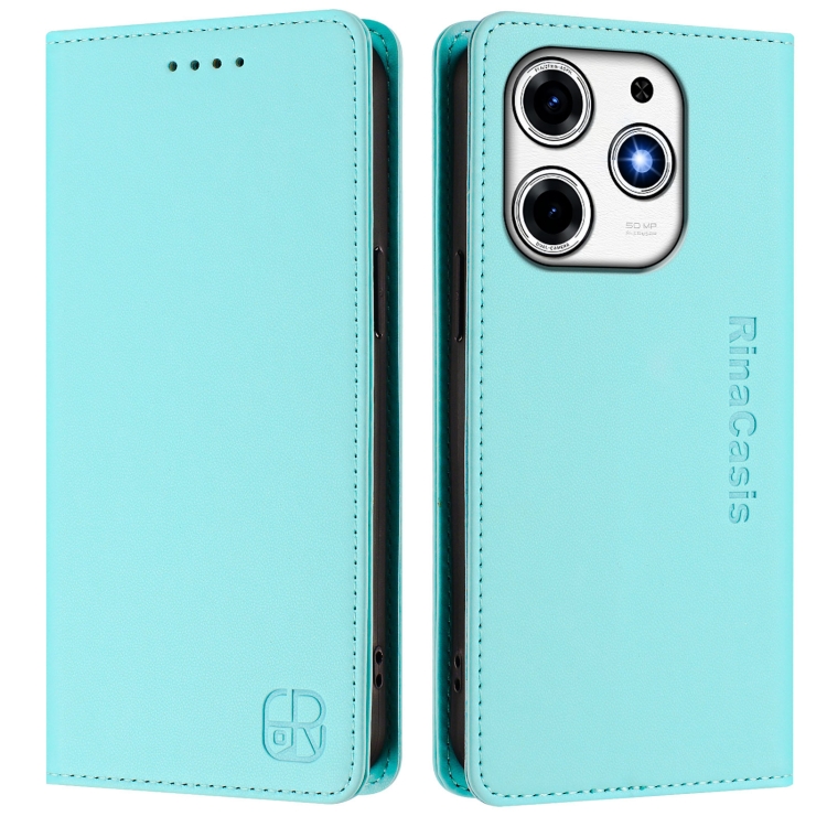 Funda de Cuero para Tecno Spark 10 Pro Magic Rc01 con Doble Pliegue y Succión Magnética Rfid (Verde Menta)