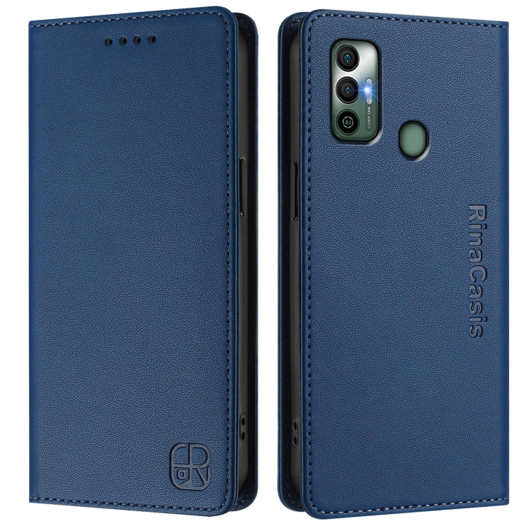 Funda de Cuero Rfid para Tecno Spark 7 / 7T Rc01 con Doble Pliegue y Succión Magnética (Azul Oscuro)