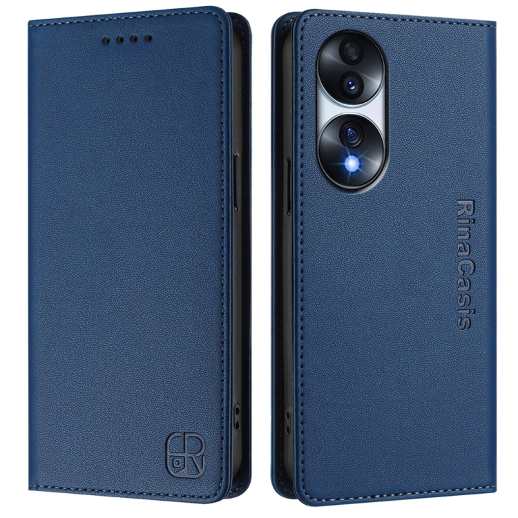Funda de Cuero Rfid para Honor 70 Rc01 con Doble Pliegue y Succión Magnética (Azul Oscuro)