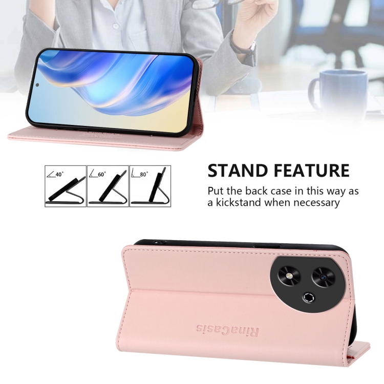 Funda de Cuero con Doble Pliegue y Succión Magnética Rfid para Honor Play 50 Rc01 (Rosa)
