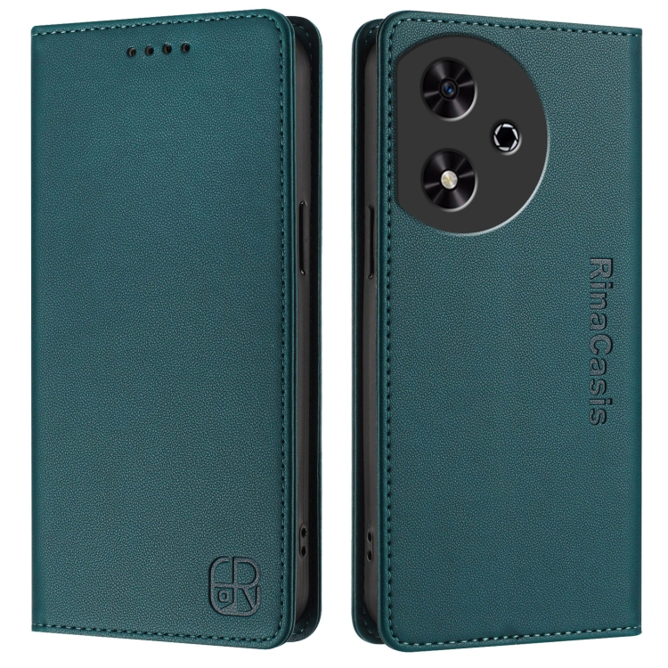 Funda de Cuero Rfid para Honor Play 50 Rc01 con Doble Pliegue y Succión Magnética (Verde Oscuro)