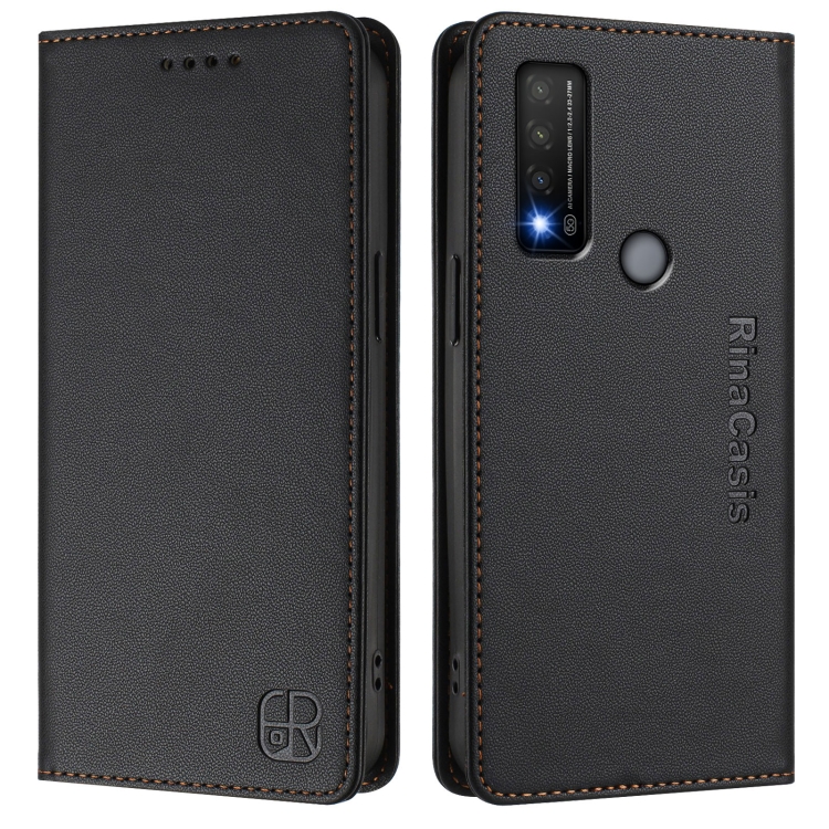 Funda de Cuero para TCL 20 R 5G Rc01 con Doble Pliegue y Succión Magnética Rfid (Negro)