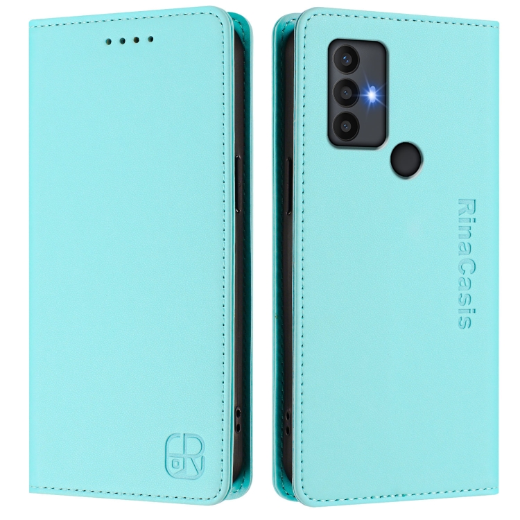 Funda de Cuero para TCL 30 Se Rc01 con Doble Pliegue y Succión Magnética Rfid (Verde Menta)