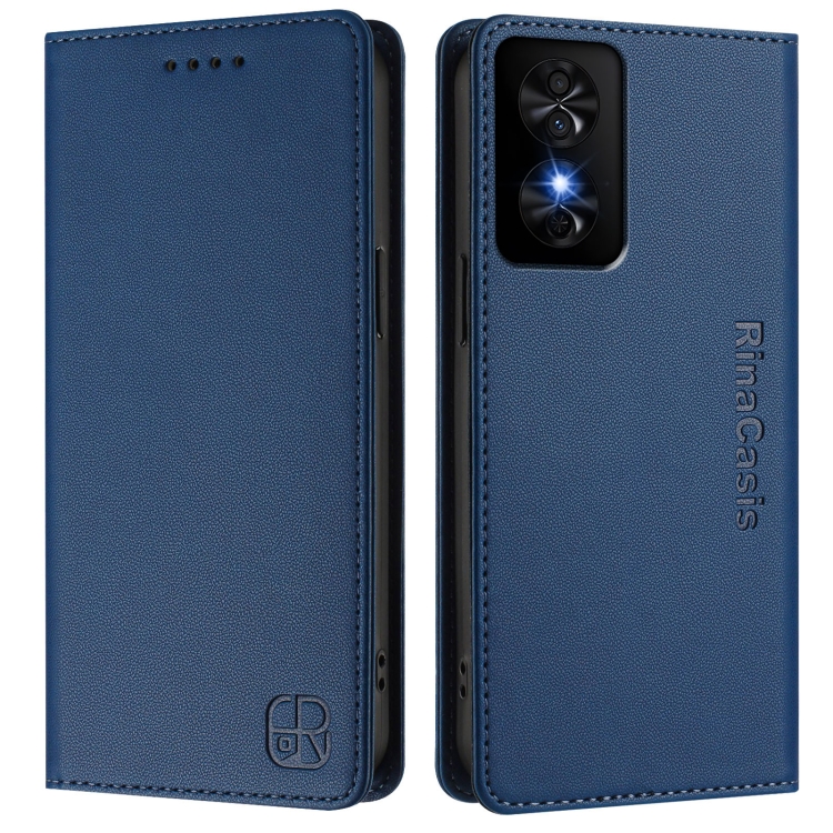 Funda de Cuero con Doble Pliegue y Succión Magnética RFID para TCL 50 Se Rc01 (Azul Oscuro)