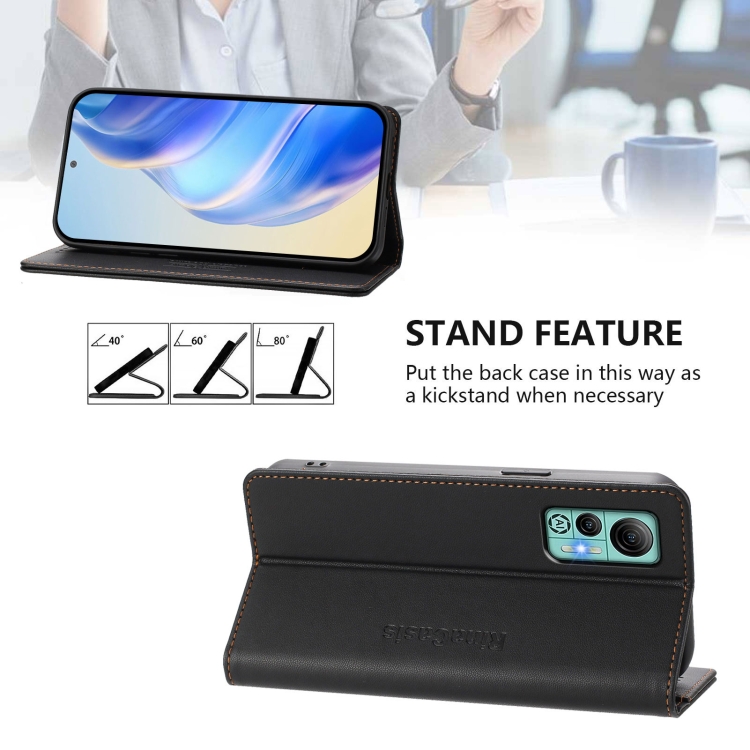 Funda de Cuero con Doble Pliegue y Succión Magnética Rfid para Ulefone Note 14 Rc01 (Negra)