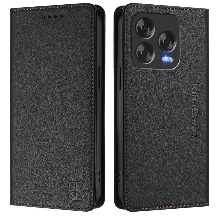 Funda de Cuero con Doble Pliegue y Succión Magnética RFID para ZTE Blade V70 (Negro)