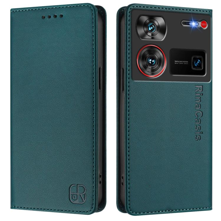 Funda de Cuero para ZTE Nubia Z60 Ultra Rc01 con Doble Pliegue y Succión Magnética Rfid (Verde Oscuro)