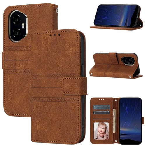 Funda de Cuero con Efecto Piel y Rayas en Relieve para Honor 300 (Marrón)