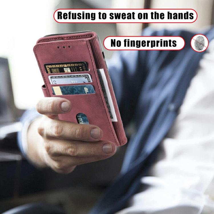 Funda de Cuero Ttudrch con Empalme de Líneas en Relieve para iPhone 16E (Rojo Vino)