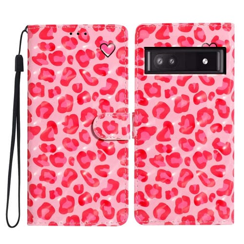 Funda de Cuero con Estampado 3D para Google Pixel 9A (Leopardo Rosa)
