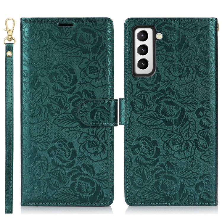 Funda Cuero Samsung Galaxy S21 FE 5G Estampado Flores Peonía (Verde)