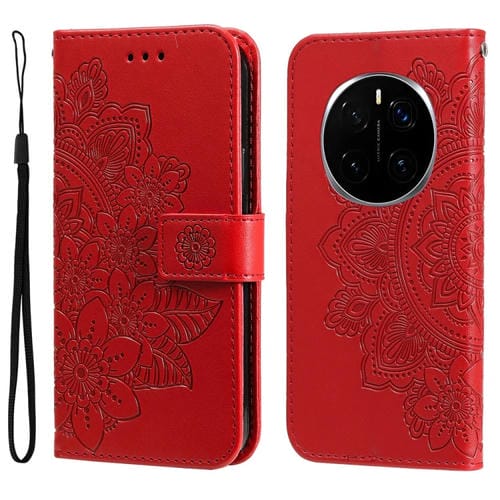 Funda de Cuero con Estampado de Flores Siete Pétalos para Honor Magic7 Pro (Rojo)