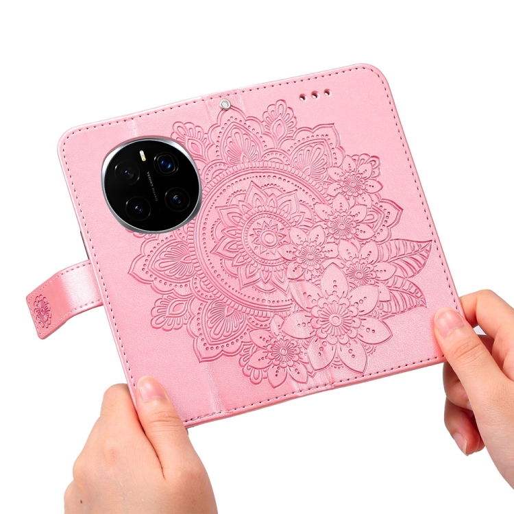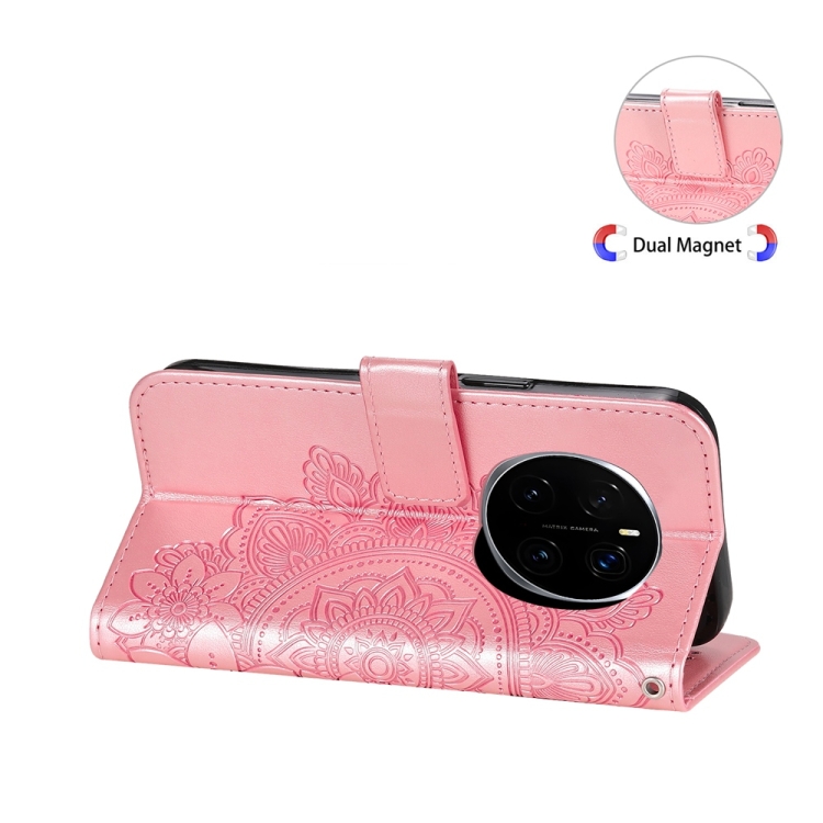 Funda de Cuero Honor Magic7 Pro con Estampado Flores Siete Pétalos (Oro Rosa)