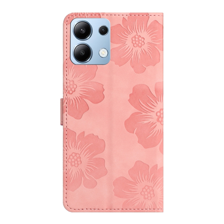Funda de Cuero con Estampado de Flores En Relieve para Redmi Note 13 4G (Rosa)