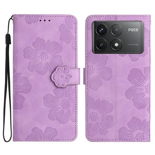 Funda de Cuero con Estampado de Flores En Relieve para Xiaomi Poco F6 Pro (Morado)