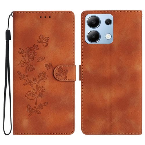 Funda de Cuero con Estampado de Flores y Mariposas para Redmi Note 13 4G (Marrón)