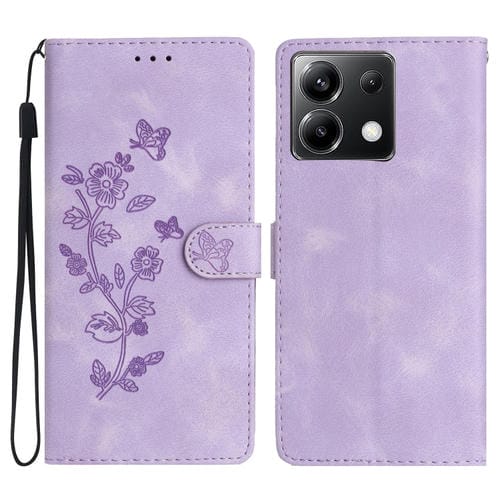 Funda de Cuero con Estampado de Flores y Mariposas para Xiaomi Poco X6 (Morado)