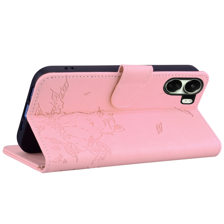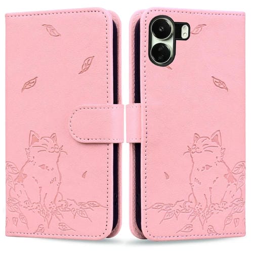 Funda de Cuero con Estampado de Gato para Xiaomi Poco C65 (Rosa)