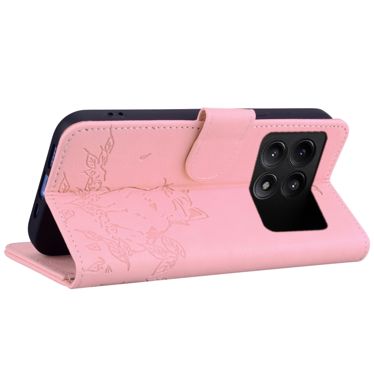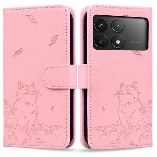 Funda de Cuero con Estampado de Gato para Xiaomi Poco F6 Pro 5G (Rosa)