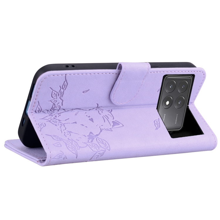 Funda de Cuero con Estampado de Gato para Xiaomi Poco X6 5G (Morado)