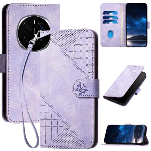 Funda de Cuero con Estampado de Mariposas en Relieve y Cordón para Honor Magic7 (Morado Claro)