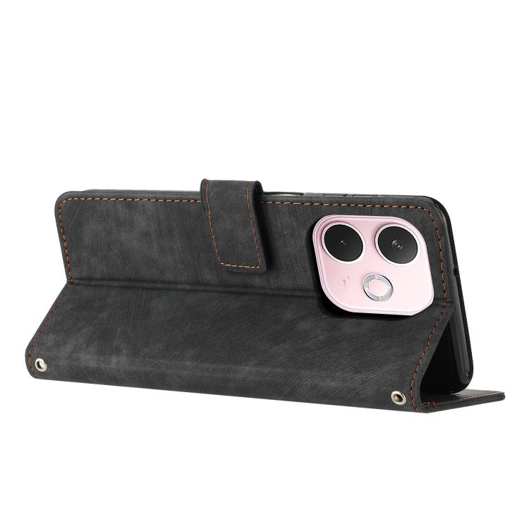 Funda de Cuero con Estampado de Rayas y Cordón Largo para Oppo A5 Pro 5G (Negro)