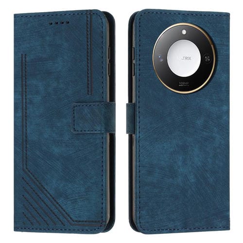 Funda de Cuero Honor X60/X9C con Estampado de Rayas y Tacto Inteligente con Cordón (Azul)