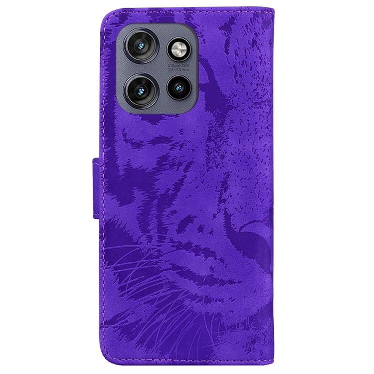 Funda de Cuero Motorola Edge 50 Neo 5G Estampado Tigre En Relieve (Morado)