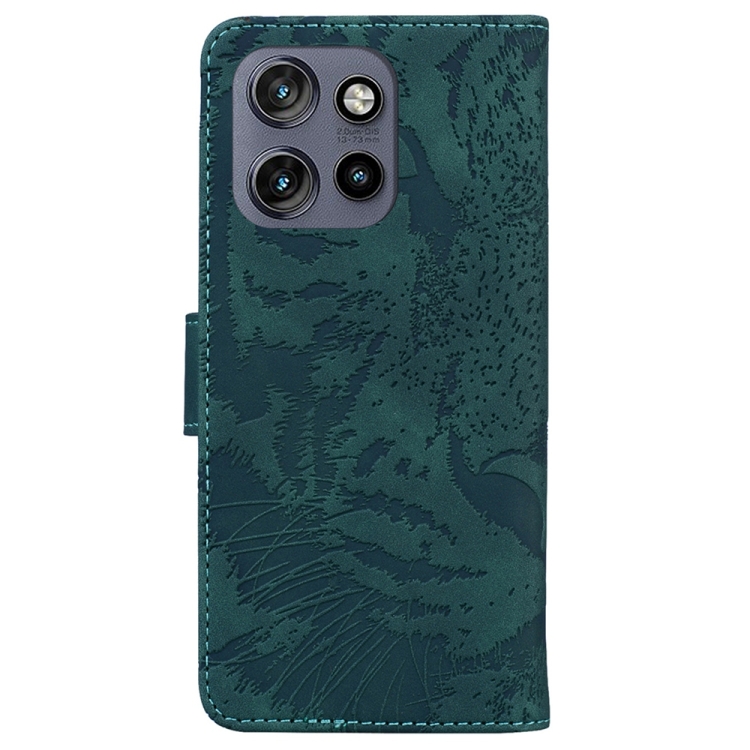 Funda de Cuero con Estampado de Tigre en Relieve para Motorola Edge 50 Neo 5G (Verde)