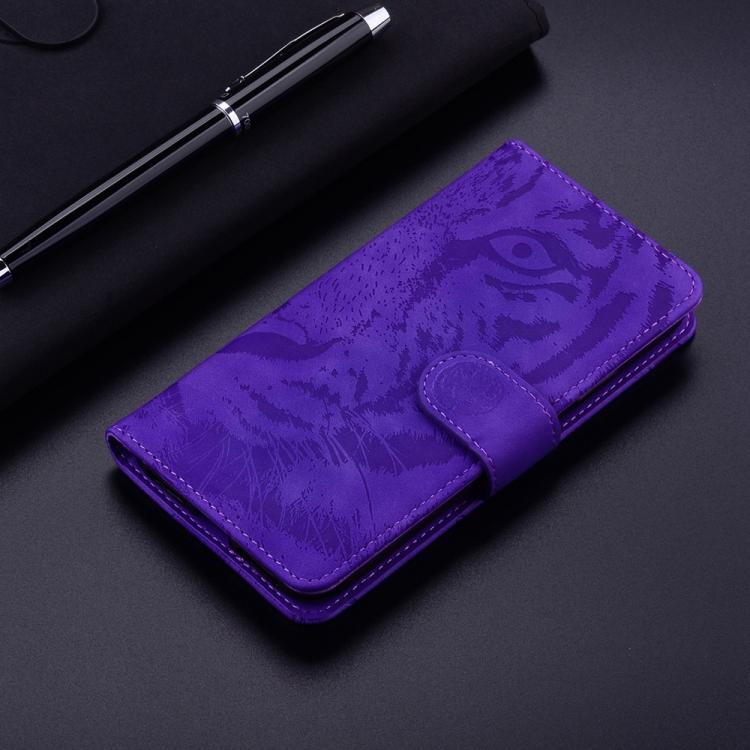Funda de Cuero con Estampado de Tigre para Motorola Moto G15 (Morado)