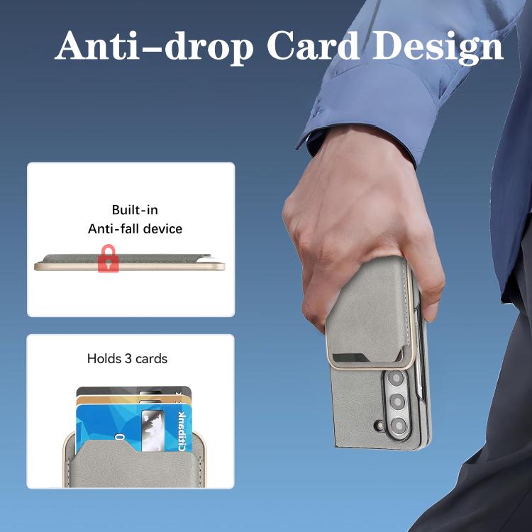 Funda de cuero con etiqueta lateral para Samsung Galaxy Z Fold5, Kalebol Slim MagSafe Ring, con tarjeta magnética y anillo (gris)