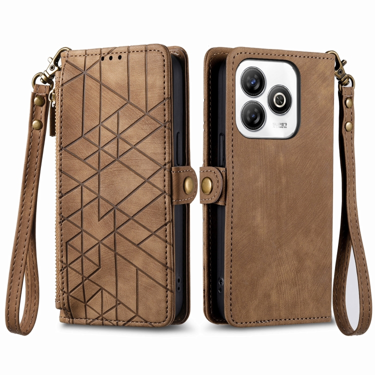 Funda de Cuero para ZTE Blade A75 4G con Hebilla Lateral y Cierre Geométrico (Marrón)