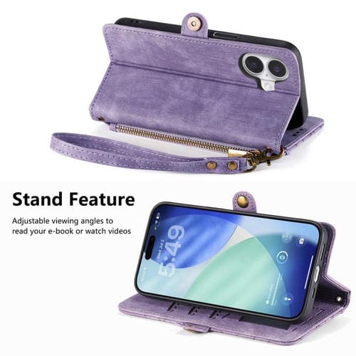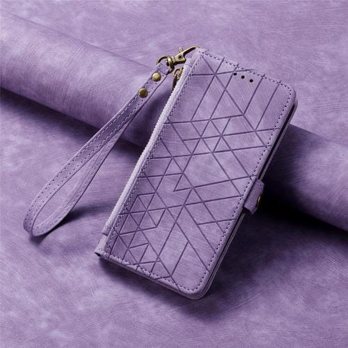 Funda de cuero con hebilla lateral y cremallera geométrica para iPhone 17 (morado)