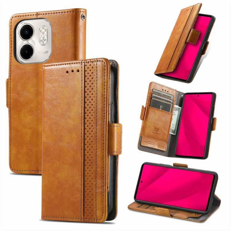 Funda de Cuero Caseneo Splicing con Hebilla Magnética Dual para Infinix Smart 9 (Caqui)