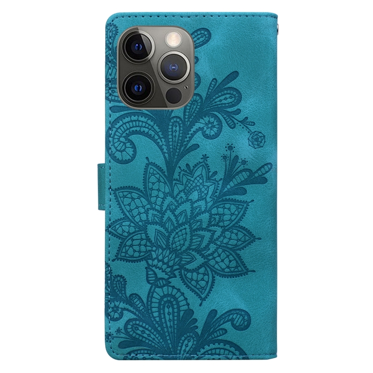 Funda de Cuero con Hebilla Magnética y Encaje Floral En Relieve para iPhone 12 Pro (Verde)