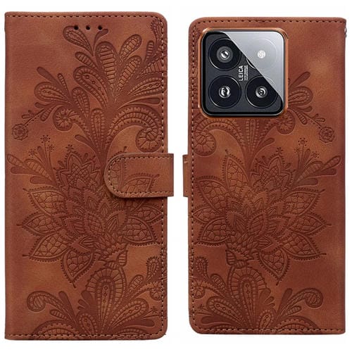 Funda De Cuero Con Hebilla Magnética Y Encaje Floral En Relieve Para Xiaomi 14 Pro (Marrón)